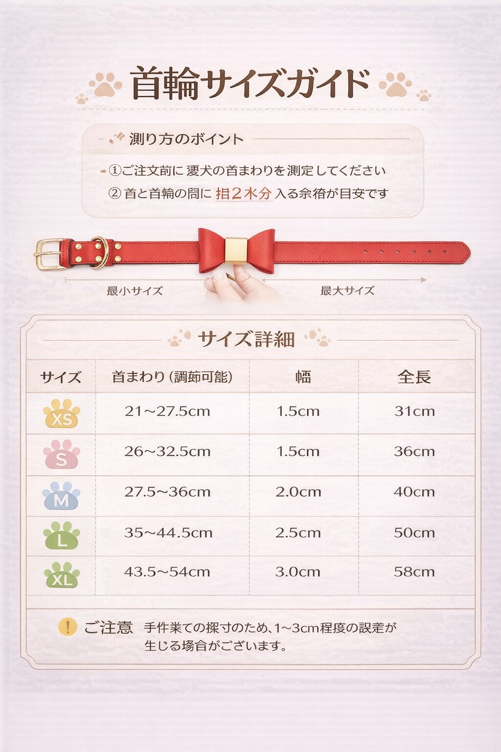 ペットの首回りを測りの上、サイズに該当する首輪をお選びください。