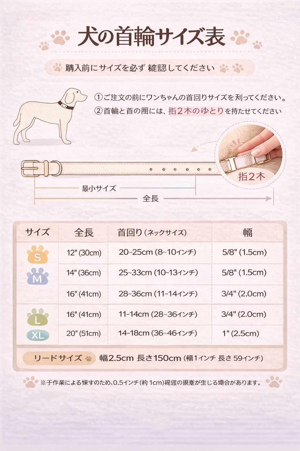 ペットの首回りを測りの上、サイズに該当する首輪をお選びください。