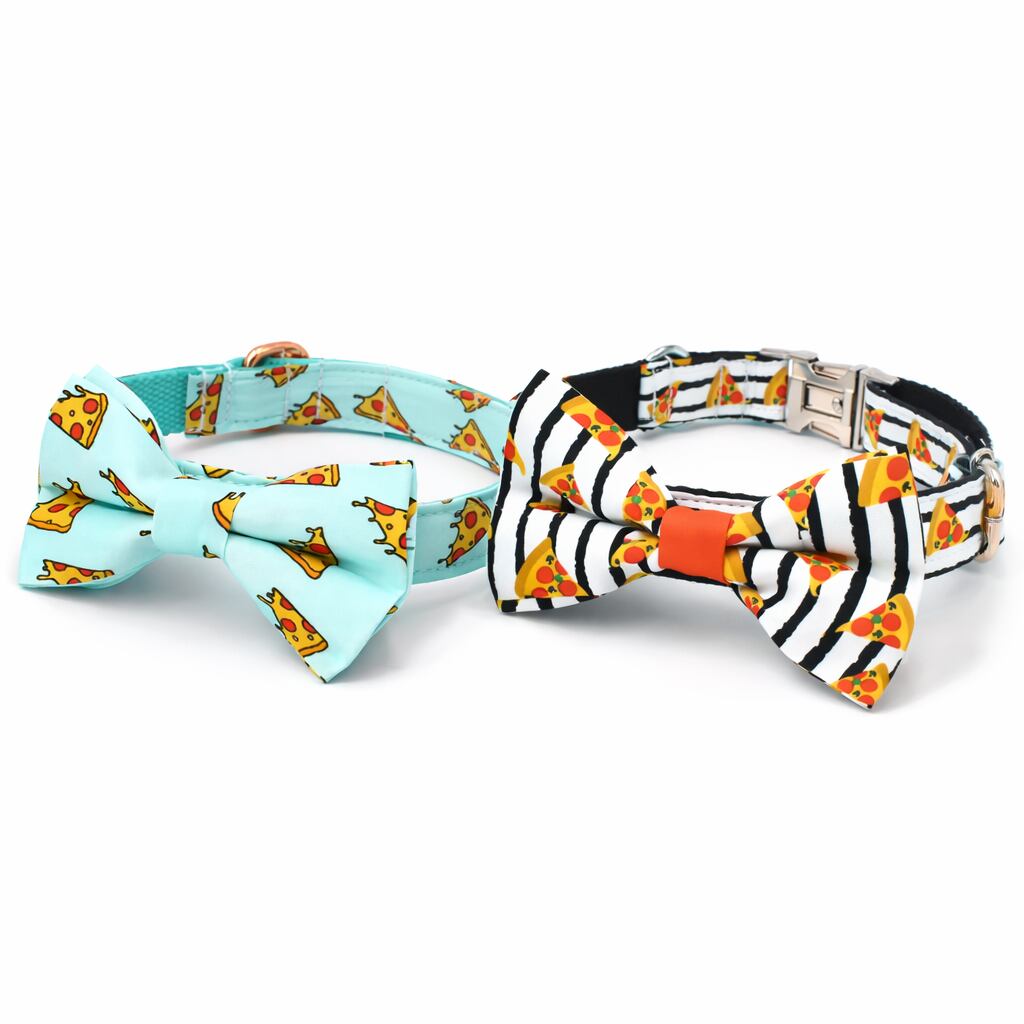 【2TYPE】わんぱく★ピザ×リボン★お名前入れ首輪