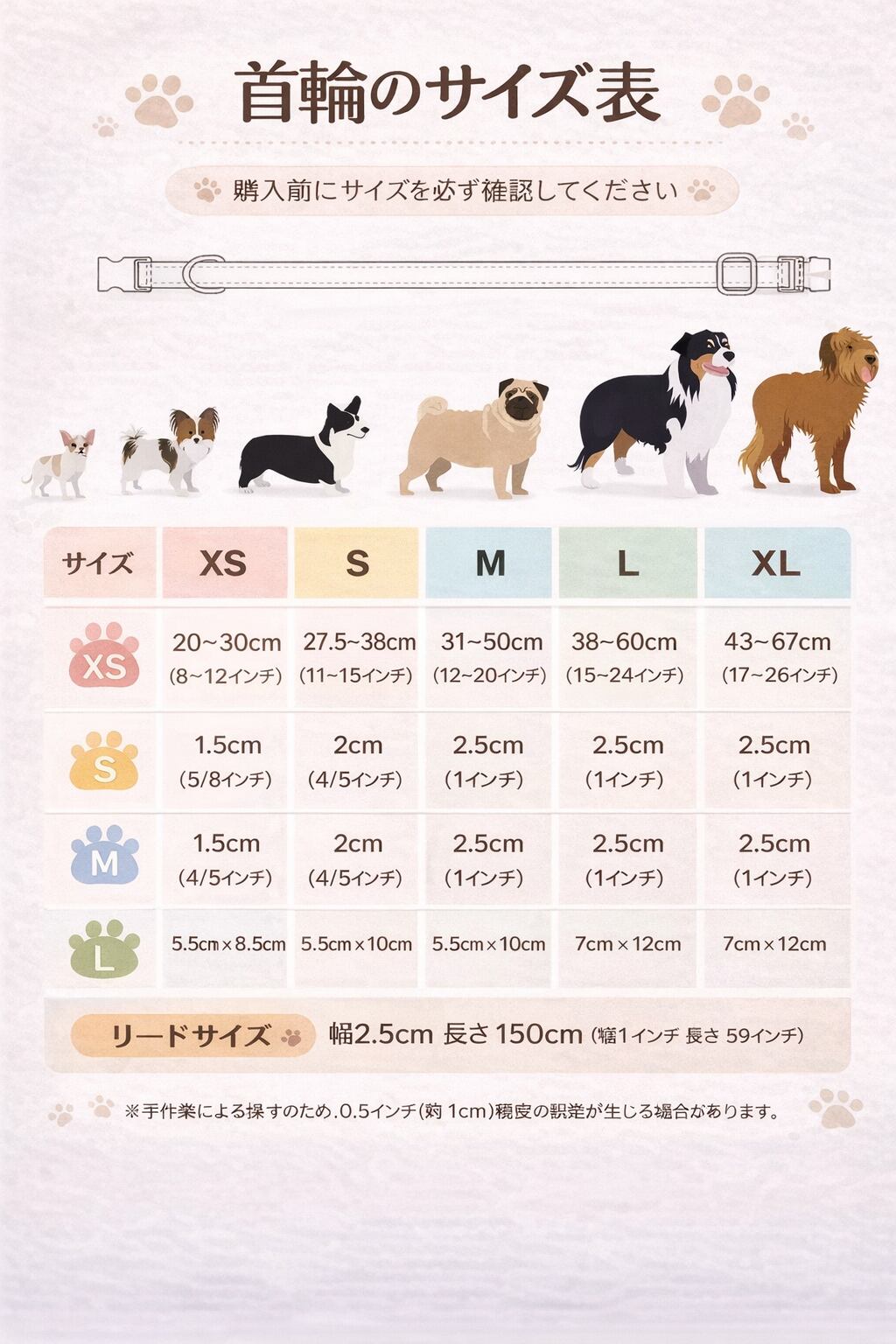 ペットの首回りを測りの上、サイズに該当する首輪をお選びください。