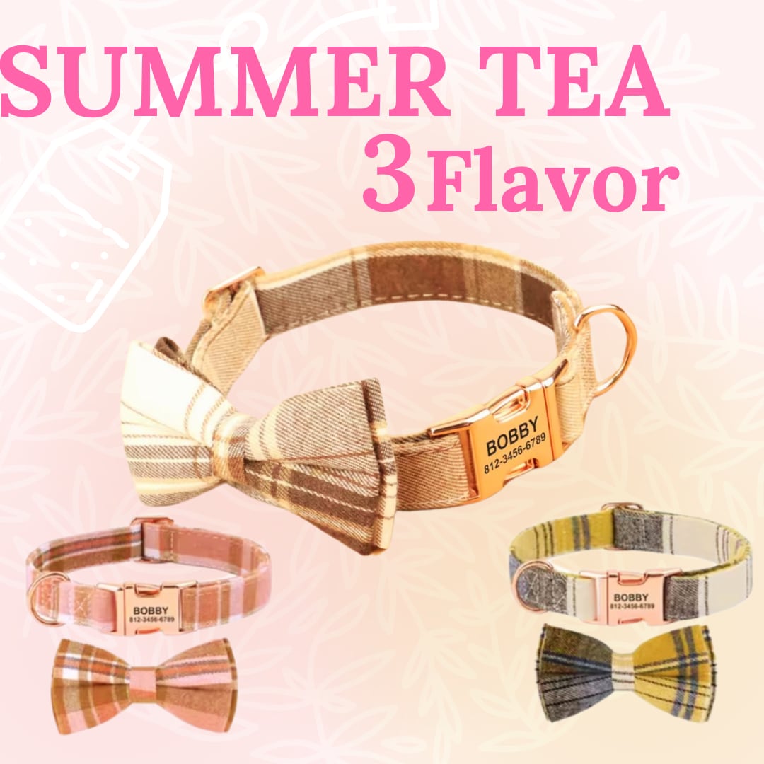 【3色展開】カジュアルリボン ティーカラー お名前入れ首輪