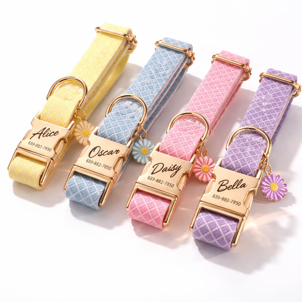 首輪の金属バックルに、ペットの名前、連絡電話を彫刻できるので、迷子になっても安心♡