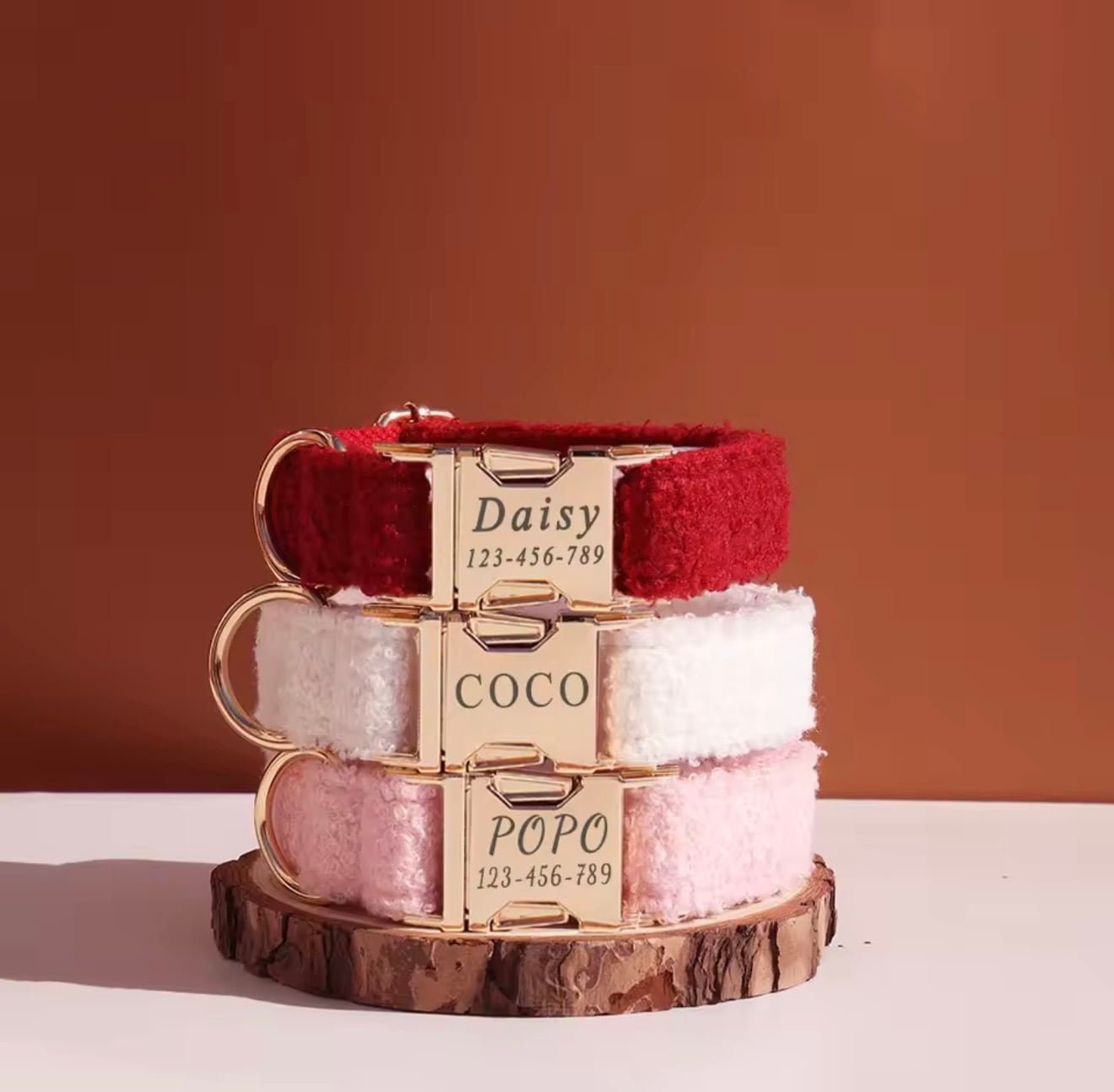 名前と電話番号を刻印できるオーダーメイド首輪です。