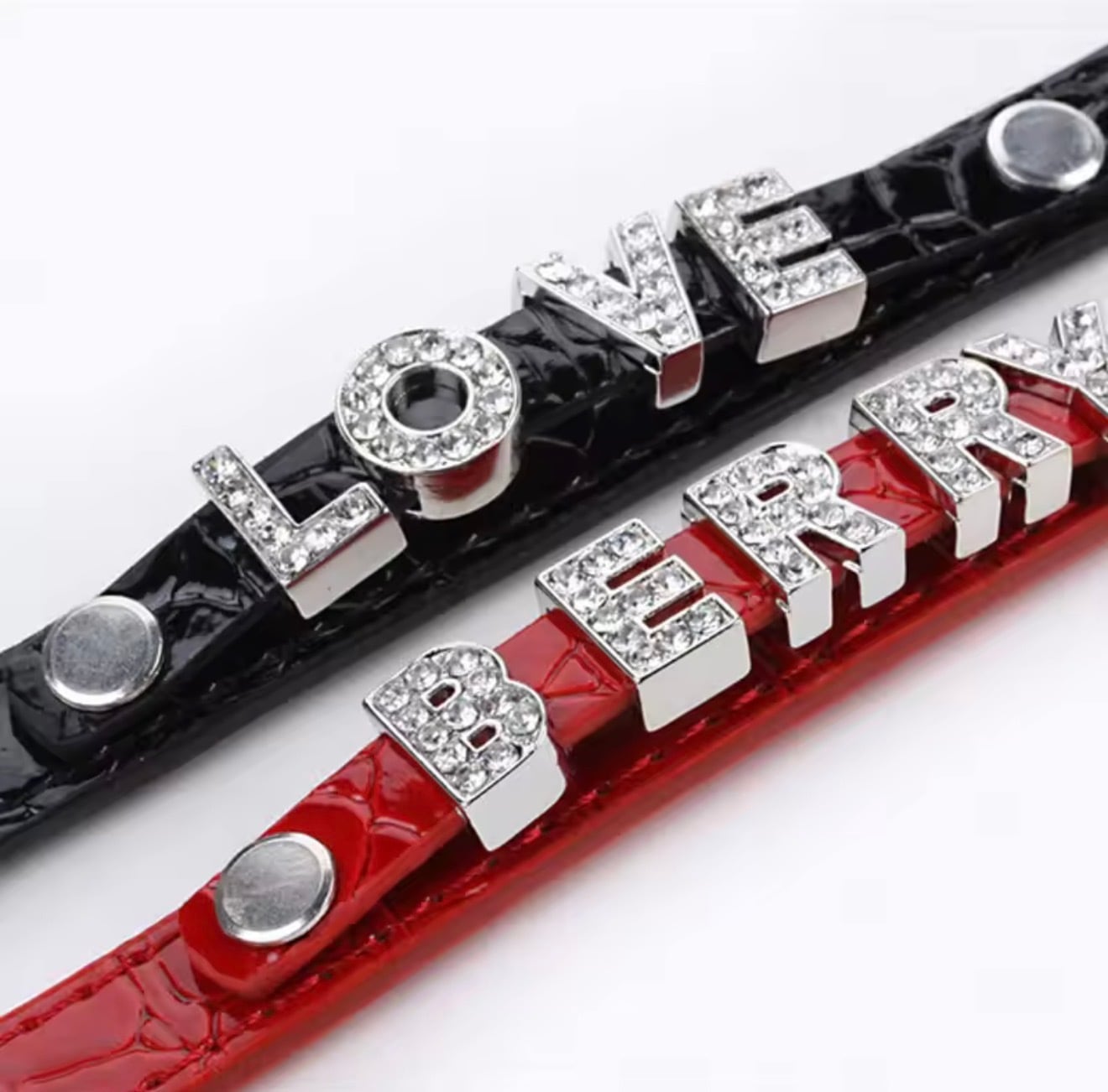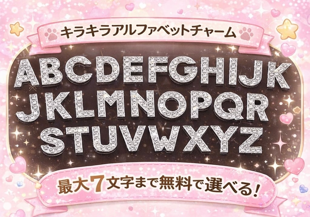・ラインストーンが輝くアルファベットチャーム付き
