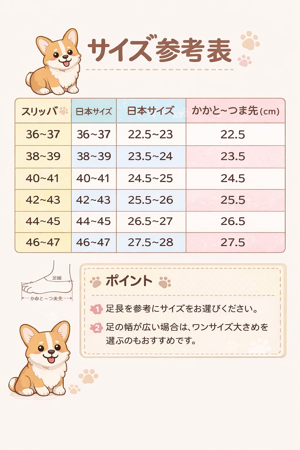 ※ゆったり履きたい方や足幅が広い方はワンサイズ上がおすすめです