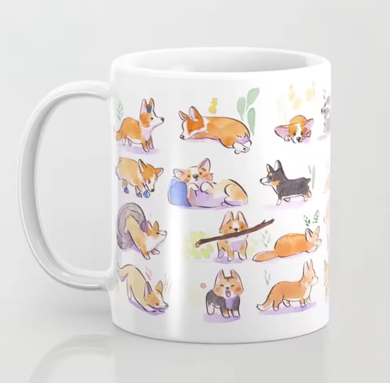 コーギーデザインのマグカップ。